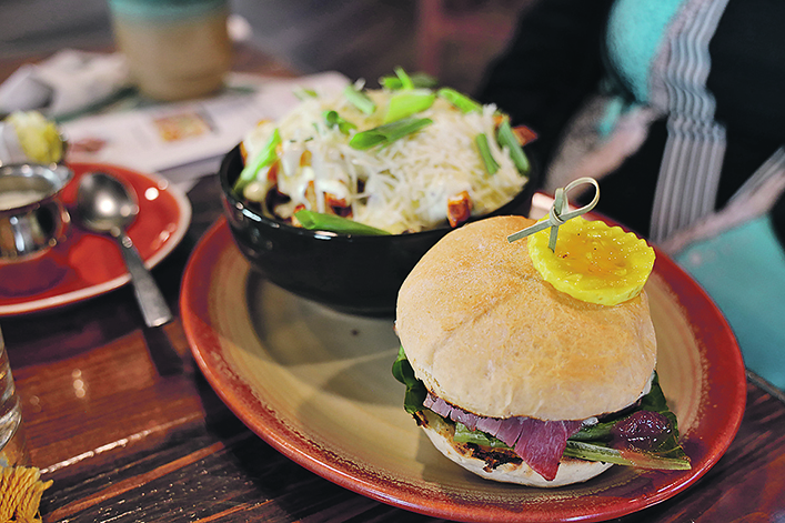 The co-op’s producer members sell their grass-raised beef, chicken, turkeys, potatoes, onions, garlic and vegetables to the co-op, which in turn create meals for restaurant guests or to sell through the market.