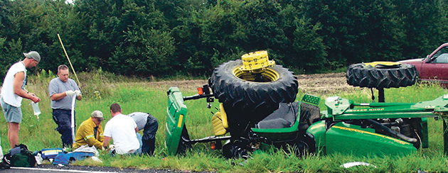 Emergency workers treated Monroe County, Missouri, farmer Kent Blades in 2006 when he was severely injured in a tractor accident. Blades and his family urge drivers to slow down and be watchful of farmers on the road during spring planting season. | Photo courtesy of Linda Blades