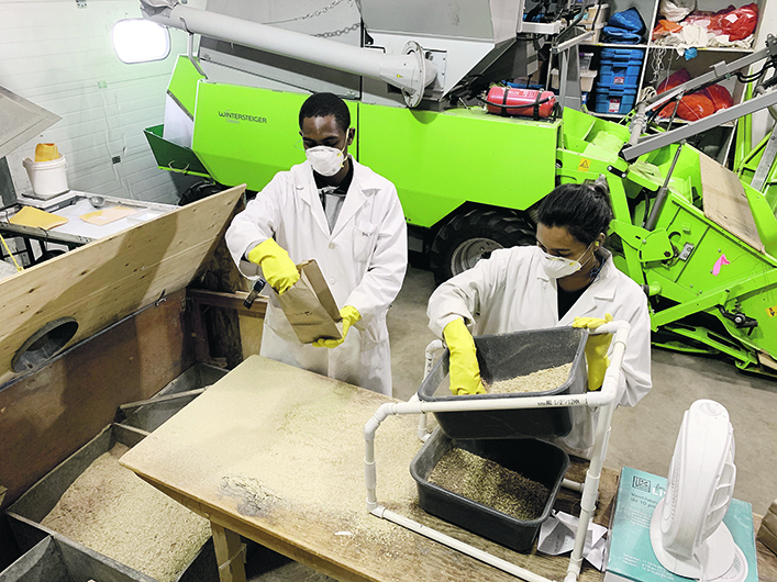 The researchers observe these set-asides during the growing season, then thresh samples of grain for lab analysis. These results are matched to the nearest weather station.