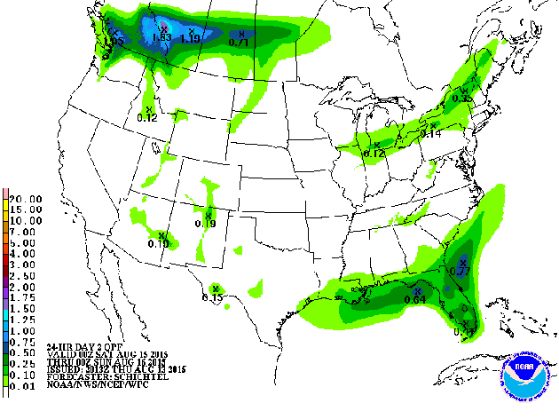 The map is from the U.S. Weather Service Climate Prediction Center. The scale is in inches.