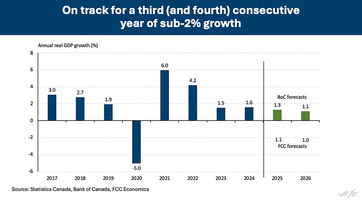 FCC executive vice-president J.P. Gervais painted a somewhat grim picture of Canada’s short-term economic sustainability as the country heads toward its third — possibly fourth — year of sub-two per cent growth.