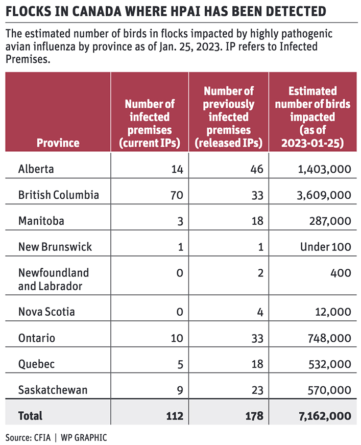 The devastation wrought by avian influenza on poultry operations in 2022 is continuing into 2023 as British Columbia starts the year with another half dozen infections at commercial farms in the Fraser Valley.