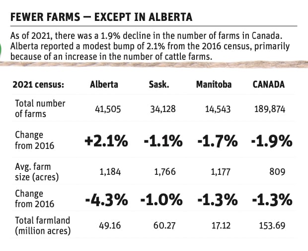 The rate of decline in the number of farms on the Prairies has slowed compared to previous census reports and less than the national average.