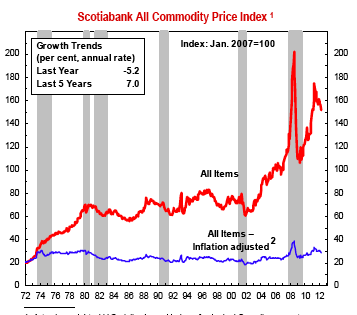 Want to feel both good and bad about the value of commodities from one chart? ScotiaBank’s commodity report recently ran this chart: