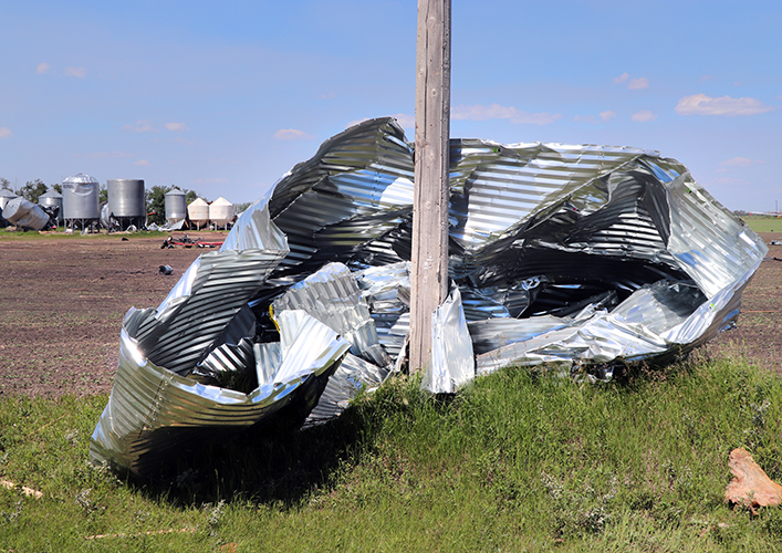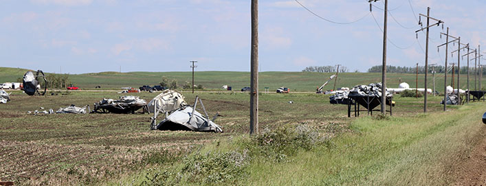 Bins and equipment were tossed into the neighbouring fields and onto the highway and roads. | Robin Booker photo