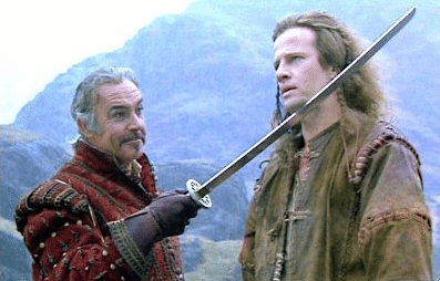 (The image above is a screen capture of an image from Highlander, a movie I once watched often when I lived in a cabin and had few videotapes, starring French-sounding Christopher Lambert as a Scotsman, Scottish-sounding Sean Connery as a Spanish swordsman, and a scary Russian-sounding dude who was probably actually from Iowa, where I’m heading right now for the annual World Pork Quickening. I’ve referred to this movie before when discussing this inter-exchange battle, apparently because I can’t get cheesy movies out of my head, and can’t stop relating them to serious things.)
