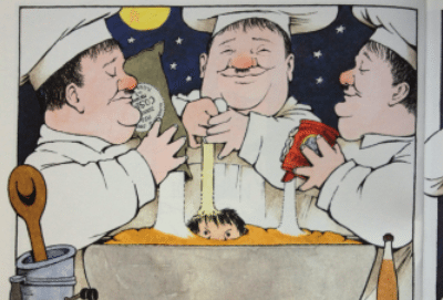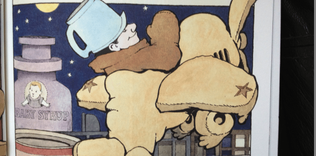 No . . . well maybe it’s just an Ed thing. But I keep thinking of Greece, the Euro, the Loonie and the Greenback as I read In The Night Kitchen, and imagined Mickey as a stand-in for Greece. Sendak’s stories are disengagingly lighthearted, but if you peer beneath the surface there’s a lot of nightmarish scariness, and the later is what Greeks are living through now.
