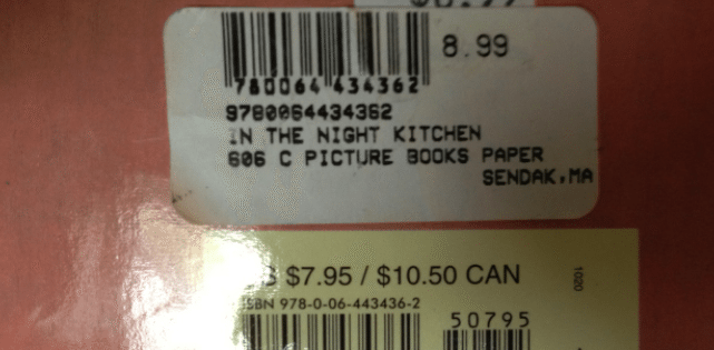 I peeled off the price sticker from the copy of In The Night Kitchen I bought the other day. Here’s what I saw: