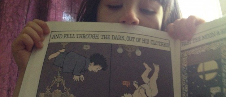 It’s a dreamy and hallucinatory story, just like Where the Wild Things Are, his most famous work. My three daughters love it. Especially the bits where Mickey yells “Quiet down there!!!” and where they see his bare butt.