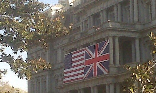 Then to my shock, I found that Washington seemed to have suddenly become sane! It was as if I had woken from a fevered nightmare to discover a happier reality. Everywhere along Pennsylvania Avenue – on every lampstand and on many buildings – the Union Jack was flying, right beside the Stars and Stripes. And on the executive offices that are part of the White House complex the pairing of flags was bold: